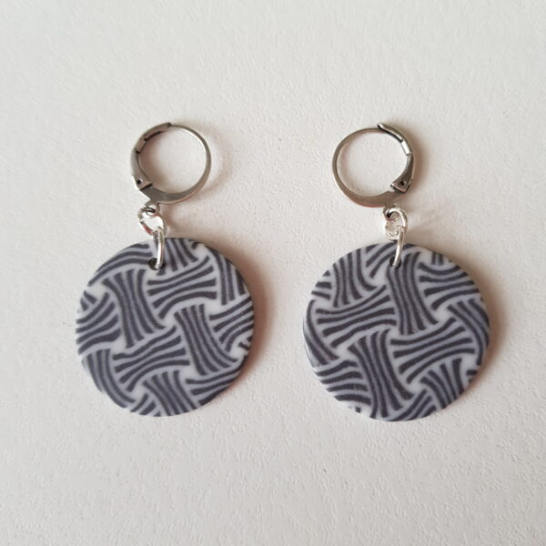 Boucles d’oreilles en crochet, faites en porcelaine, avec la technique Nerikomi. Léger, discret mais aussi élégant. Non allergène : Sans nickel, sans plomb et sans cadmium (Pour la taille, sur la photo avec une pièce de monnaie, le modèle de boucles d’oreilles n’est pas identique au produit proposé)