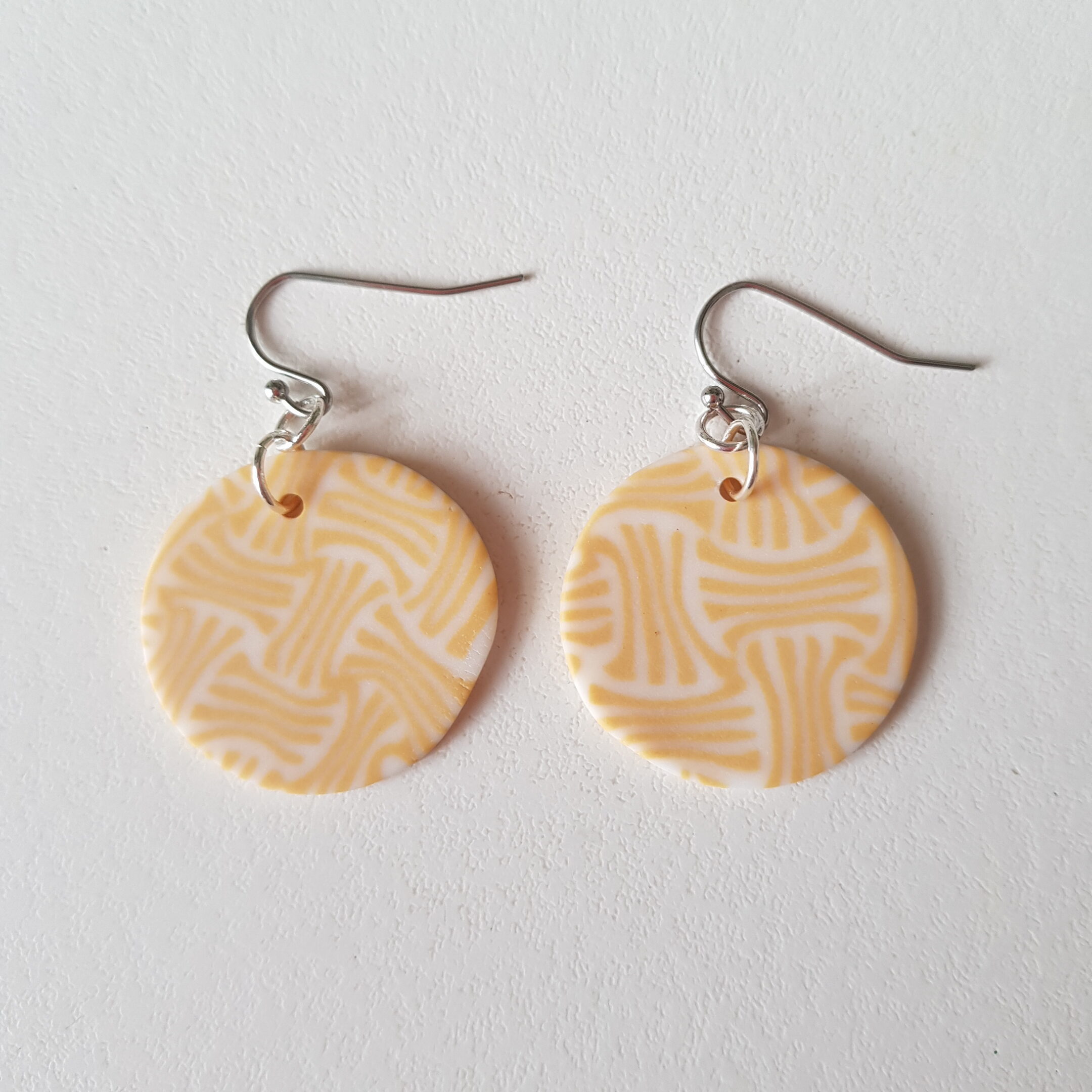 Boucles d’oreilles en porcelaine, épurées et chic, faites avec la technique “nerikomi”, autrement dit nériage, terres-mêlées. Les couleurs sont dans la masse, ce n’est ni peint ni imprimé. Les dégradé de couleurs ou les lignes, tout ce que vous voyez sur cette pièce sont le résultat d’assemblage de petits morceaux de porcelaine teintées préalablement par Yuko, elle-même.